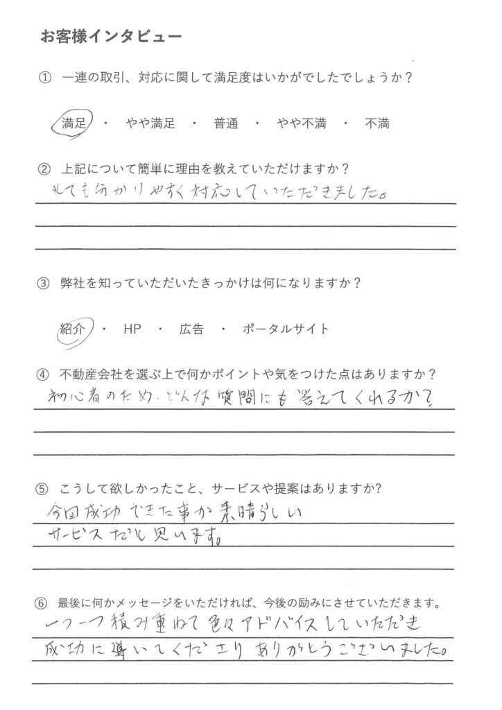 物件の提案から購入に至とても分かりやすく対応していただきました。