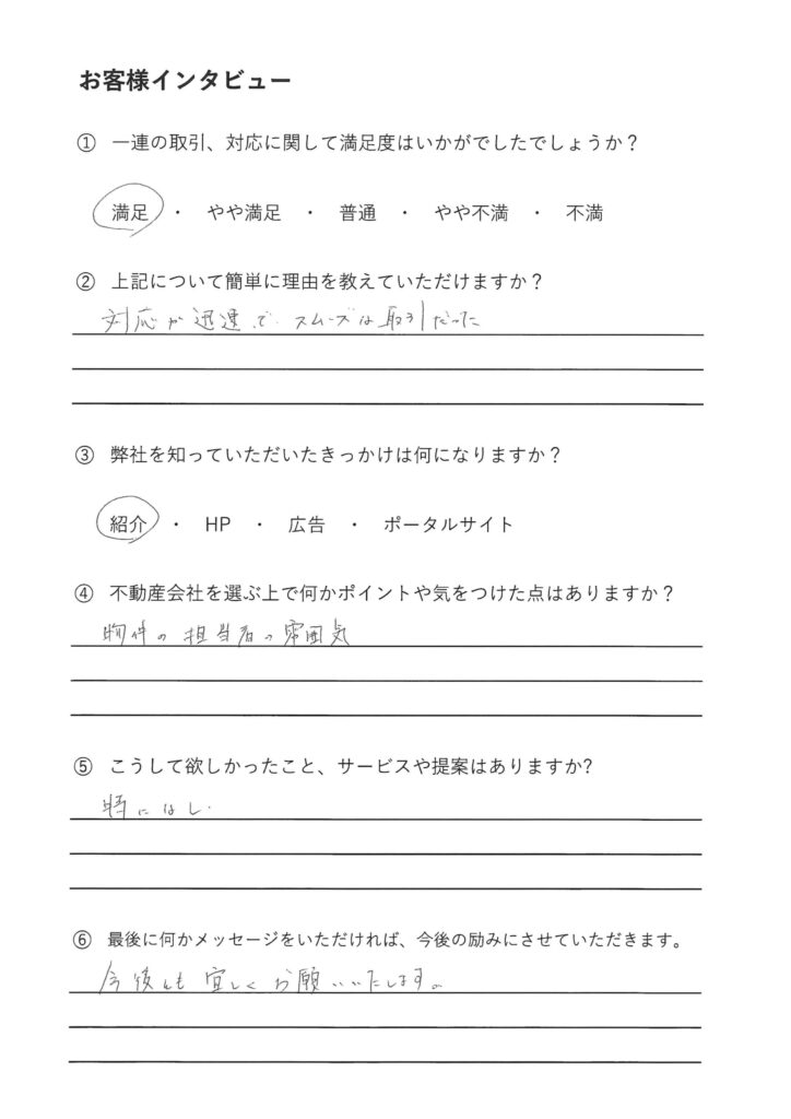 Q1.一連の取引、対応に関して満足度はいかがでしたでしょうか?