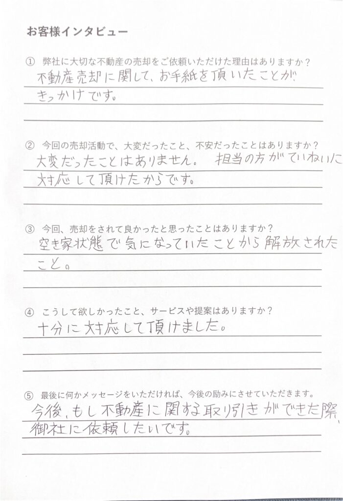 不動産売却に関して、お手紙を頂いたことが、きっかけです。